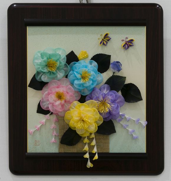 『つまみ細工 カラフル牡丹』
